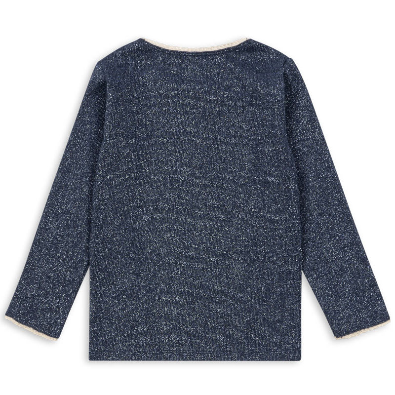 En myk og elastisk ribbestrikket topp med skinnende lurex-finish som gir antrekket et hint av glitter og eleganse. Perfekt som et hverdagsplagg med litt ekstra glans.