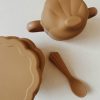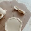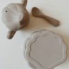 Nydelig sett for de minste inspirert av skjell. Består av en skål med 2 lokk hvor det ene har snackcup-åpning så små fingre kan forsyne seg uten å søle, tutekopp og skje. Koppen og skålen har myke silikonlokk.