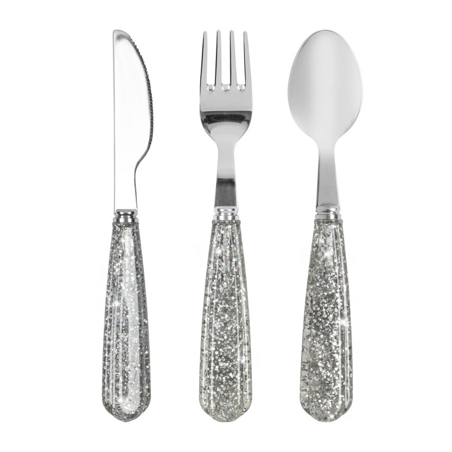 Et lekkert bestikksett med glitrende håndtak som gjør ethvert måltid enda mer spennende. Laget i slitesterkt rustfritt stål, perfekt til små hender som liker å spise selv.