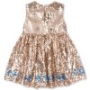 En drøm av en glitrende paljettkjole dekket i glitrende paljetter og designet med markert midje, rund hals og utsvingt skjørt. Perfekt til festlige anledninger hvor man ønsker litt ekstra glam.