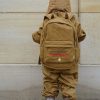Romslig ryggsekk med ekstern flaskelomme. En bryststropp sikrer at ryggsekken er komfortabel og støtter ryggen. Sekken er veldig lett, noe som er en viktig ergonomisk faktor. På toppen har den en solid løkkehenger til å holde eller henge på et stativ. Inne i veskens store rom kan du skrive barnets navn. Tre små lommer gjør det enkelt å holde orden. Sekken kan brukes hele året da den er laget for å motstå skiftende vær, smussavvisende og lett å rengjøre.