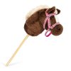 Den myke hesten har fine detaljer som fløyelstau, metallringer og glinsende øyne, og er perfekt til fantasifull rollelek både inne og ute.