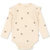 En myk og behagelig body i økologisk bomull med søte volangdetaljer på skuldrene. Designet med trykknapper i åpningen nederst for enkel påkledning og bleieskift.