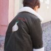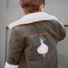 Superkul vendbar jakke med mykt teddyfôr på den ene siden og cordfløyel i bomull på den andre. Jakken har 2 frontlommer på begge sider. Bomullsfløyelssiden er designet med broderi som dekorerer ryggen. Jakken har teddy-krave som holder halsen god og varm. Lukkes med knapper.
