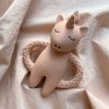Supersøte små bitedyr i 100% naturlig Hevea gummi, perfekte når gommene klør eller som en leke. Det søte dyrets fasong og ulike overflater stimulerer babyens sanser; syn, hørsel, lukt, berøring og smak. God å holde i og passer fint til små hender enten som en vanlig leke eller som en biteleke. Rengjøres med en fuktig klut eller med såpevann (maks 30 grader). Ikke bruk noen kjemikalier på gummileketøy.
