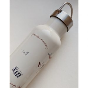Skjønn drikkeflaske i stål av høyeste kvalitet. Holder drikke varm eller kald og leveres med både vanlig lokk og sportstut som begge kan henges på sekken, bagen eller vognen.