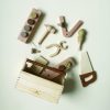 Superfin verktøykasse i en fin lys trefarge. Verktøykassen inneholder masse forskjellige verktøy som sag og hammer som er gøy å leke med.