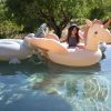 Suuupercute flyteleke formet som en enhjørning med håndtak på halsen. Ta den med på stranden, basseng eller i sydenkofferten.