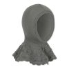 Lun og varm strikket hjelmlue i 100% myk merinoull. Sitter fint rundt hodet.