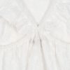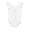 Ermeløs romper i engelsk blonde med volanger langs skuldre og lår. Nydelig til sommerens anledninger! Designet med kryssstropper på ryggen og trykknapper i skrittet for enkel påkledning.