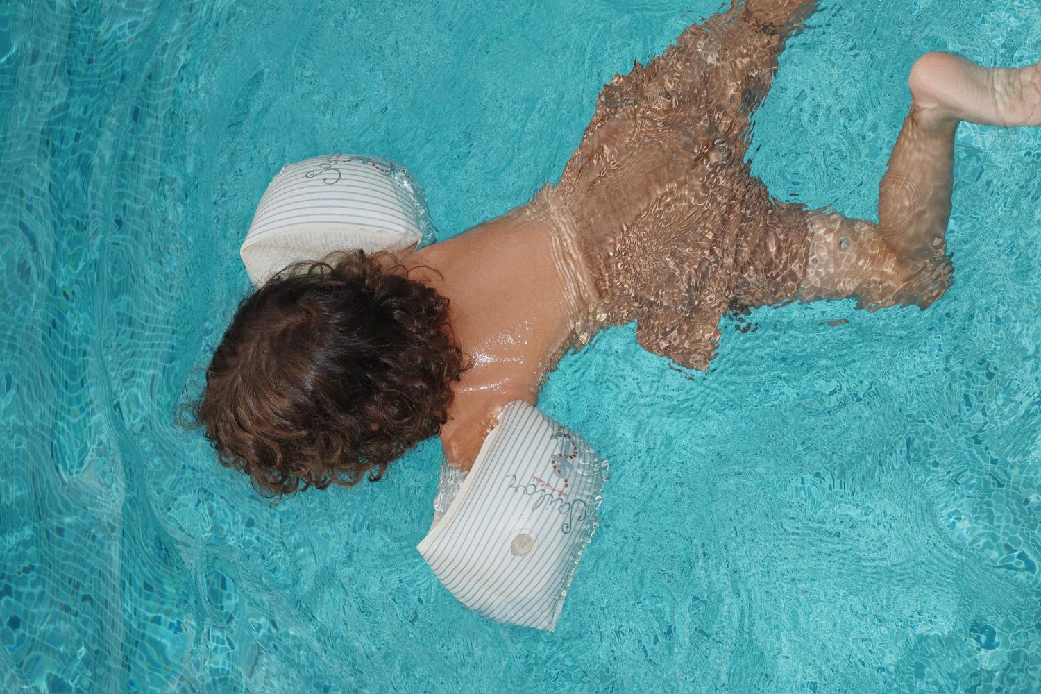 WILL NOT PROTECT AGAINST DROWNING. USE ONLY UNDER CONSTANT ADULT SUPERVISION. THIS IS NOT A LIFESAVING DEVICE. ALWAYS FULLY INFLATE ALL AIR CHAMBERS. ALL COMPONENTS SHALL BE WORN. TO BE WORN ON THE UPPER ARM ONLY.