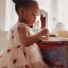 Superfin kjole med tyllskjørt for små prinsesser i 3 lag tyll, med underskjørt og elastikk i midjen. Designet med folietrykk og et utsvingt snitt.