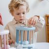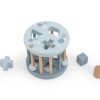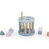 Puttekasse formet som et hjul er en morsom aktivitetsleke for de mindre barna. Puttekassen har seks hull i forskjellige former. Putt de forskjellig formede treklossene i de matchende hullene. Tøm deretter boksen ved å trekke opp den bevegelige pinnen og spillet kan starte på nytt. Det vil underholde barnet ditt i lang tid og utvikler form- og fargegjenkjenning, logisk tenkning, finmotorikk og fingerferdighet. Puttekassen kan også rulle på gulvet og oppfordrer små barn til å krype etter.