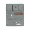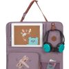 Wrap-to-go organisator for baksetet har massevis av lommer og rom for alt fra kosedyr, drikkeflaske, snacks til tegnesaker. Den er designet med en wrap-to-go funksjon slik at den enkelt kan tas ut og inn av bilen med alt barnet vil ha med seg. Oppbevaringslommene har glidelåser og borrelåsfester. Ekstra rom for nettbrett, og ved siden av sitter et feste for hodetelefoner. Stort rom på baksiden som rommer bøker osv opp til A4 størrelse.