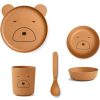 Nydelig sett med tallerken, skål, kopp og skje som passer til frokost, lunch og middag! Gode å ta på, kule og måltidet blir morsommere.