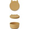 Supersøt snackboks i silikon med søte ører:) Denne passer fint til f.eks. snacks eller bær. Lokket kan brukes som en tallerken og skålen som en skål. Mykt materiale, stablevennlig! Dette er den største boksen i serien, Carrie er minst og Cornelius er medium.