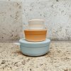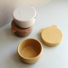 Supersøt snackboks i silikon med søte ører:) Denne passer fint til f.eks. snacks eller bær. Lokket kan brukes som en tallerken og skålen som en skål. Mykt materiale, stablevennlig! Dette er den største boksen i serien, Carrie er minst og Cornelius er medium.