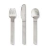 Rustfritt stål, 3-delt bestikksett til litt større barn som vil spise selv. Passer fint på bordet og er gode å holde i hånden med myke silikonhåndtak.