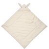 Deilig vattert koseteppe til å pakke bebissen inn når du er hjemme eller på farten. Teppet er laget av 100% økologisk bomull og resirkulert polyester, og har en søt hette med kaninansiktsbroderi og ører festet i den øverste sømmen.