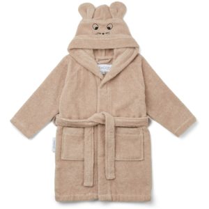 Liewoods myke og søte morgenkåpe for familiens yngste, den er kosete og kan brukes ved basseng eller strand, etter et bad, før sengetid eller på en lat lørdag morgen. Den har søte små ører og brodert ansikt, lommer og knytebelte. Produsert i nydelig 100 % økologisk bomullsfrotté. Liewood anbefaler å vaske tøy på lave temperaturer for å holde plagget fint lenger og for å spare miljøet.