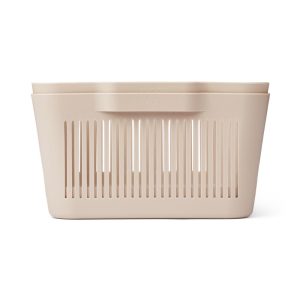 Oppbevaringskurver med håndtak i resirkulert plast! De allsidige Makeeva-kurvene er den perfekte løsningen for å fylle kurvene og sette de inn i åpne hyller. Stables når de er tomme og er enkle å sette inn i skap hvis du ønsker å gjemme de bort. Perfekt for klær, tilbehør, mindre leker og mye mer, denne enkle og perforerte designen har håndtak og er lett å flytte rundt i hjemmet for både små og større familiemedlemmer.