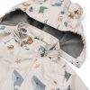 Vind- og vanntett regnjakke med avtagbar hette og regnbukser med justerbare seler. Settet er laget av pustende softshell resirkulert stoff i klassiske LIEWOOD farger og trykk. Har en stolpe over glidelåsen og teipede sømmer som sikrer at den lille holder seg varm og tørr selv på de våteste dagene av sesongen.