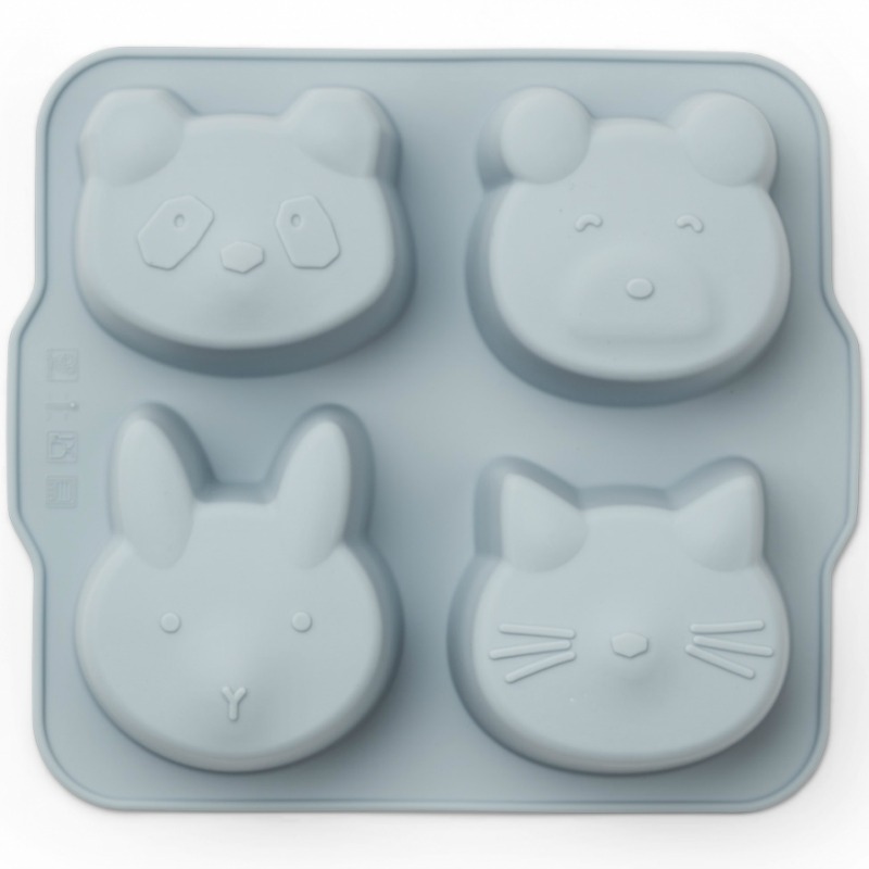 Bakeformer i silikon med fine Liewood-dyr. Formene gjør at bakverket får fine dyreører og ansikter, og der blir mer gøy å bake. Formene er et fint og bæredyktig alternativ til bakeformer i papir. 4 ulike dyr på bakeformen; katt, bjørn, panda og kanin.