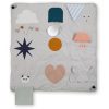 Aktivitetsteppe som er like fint under en babygym eller bare som et leketeppe. God plass til flere barn som kan boltre seg rundt. Det er ulike aktiveteter på teppet som utvikler barnets sanser. Fine avstemte farger gjør at det passer inn overalt, også midt på stuegulvet. Det er gjemt en panda og en kanin bak noen av figurene, og speil er alltid gøy!