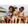 Mini kan kose seg i solen beskyttet av Max UV-dress med lange ermer og høy krage.