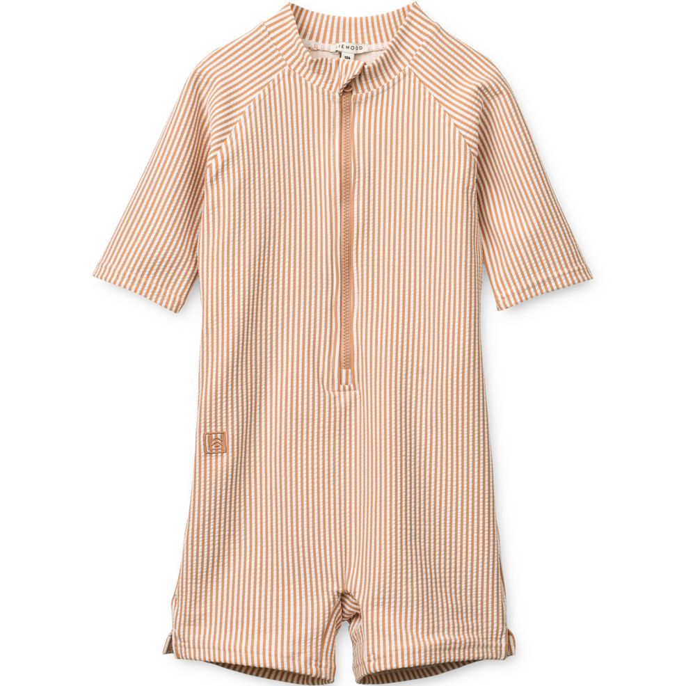 Liewood Max seersucker shortsleeve swim jumpsuit – Y/D stripe pale tuscany/creme de la creme