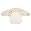 Praktisk smekke med armer og lomme som beskytter barnets klær mot søl. Smekken lukkes med 2 trykknapper i nakken, er vanntett og tørkes enkelt av etter bruk.