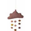 Skjønn sky-mobil strikket i økologisk bomull. Kan henges i taket over sengen eller stelleplassen, eller som pynt inni sengehimmelen. Pompom’ene sammen med skyen utgjør en nydelig fargepalett som stimulerer sansene til den lille. Kommer i en fin tøypose.