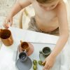 Søtt tesett som passer like godt til timesvis med teselskap i badekaret som til lek. Settet består av en tekanne, 4 tekopper med tilhørende fat og et brett.