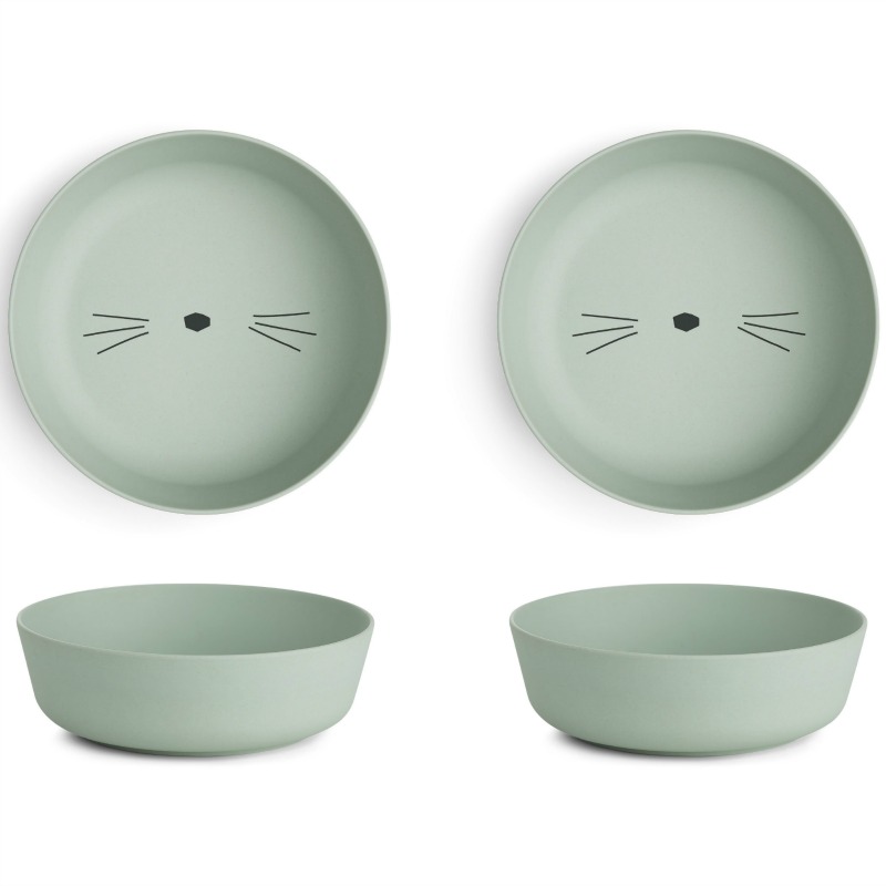 Liewood Roberta bamboo bowl 2pk – Cat dusty mint