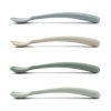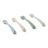 Søte skjeer og gafler i myk silikon med et skaft som er godt å holde i. Lydløse ved fall i gulvet.