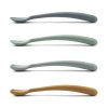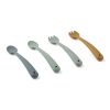 Søte skjeer og gafler i myk silikon med et skaft som er godt å holde i. Lydløse ved fall i gulvet.