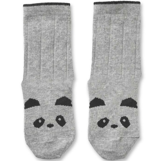 Liewood Silas cotton socks panda 2pk – grey melange