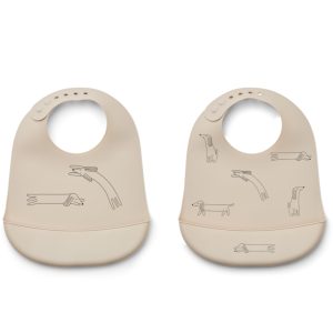 Liewood Tilda printed silicone bib 2pk – dog/sandy