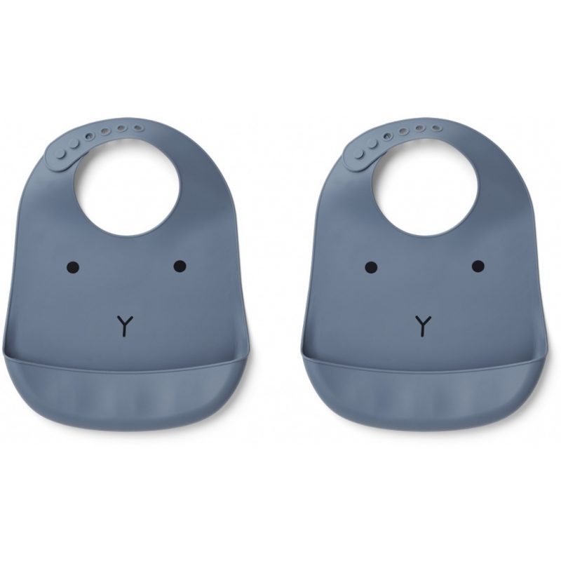 Liewood Tilda printed silicone bib 2pk – rabbit blue wave