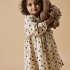 Langermet kjole med knapping bak i vevet stoff, komfortabel og løs passform. Styles med strømpebukser eller leggings i samme farge eller annet fra den fine kolleksjonen.
