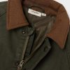 Super kul «oilskin» jakke med myke velour krage. Lukkes med trykknapper og glidelås. Glidelåsbeskytter for å forhindre at glidelåsen tar tak i huden.