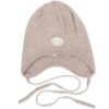 Nydelig babylue med knyting i 100% tynn merinoull som passer til både gutt og jente Luen sitter godt rundt hodet, og kan brukes alene eller under andre luer som et ekstra lag.