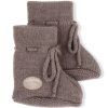 Myke babytøfler med knyting som holder tøffelen på plass.