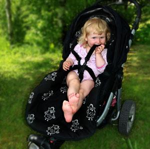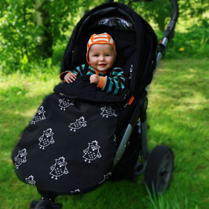 * Vognposen har toveis glidelås som gjør at den deles i to. Den kan enten brukes som hel vognpose, toppdel blir til teppe eller bunnen til kan benyttes separat som godt og mykt sitteunderlag i vogn. TIPS: snu bunnen og la barnet sitte på mønstersiden – du har et flott seatinsert i spreke farger!