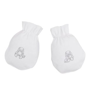 Myke og behagelige votter som holder den nyfødte varm, samtidig som de beskytter mot små rivemerker i ansiktet. En praktisk og søt liten favoritt i babyens første garderobe.