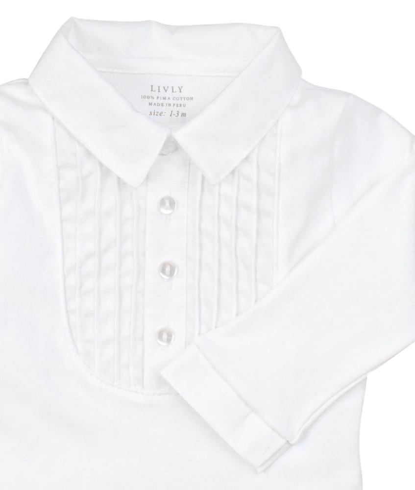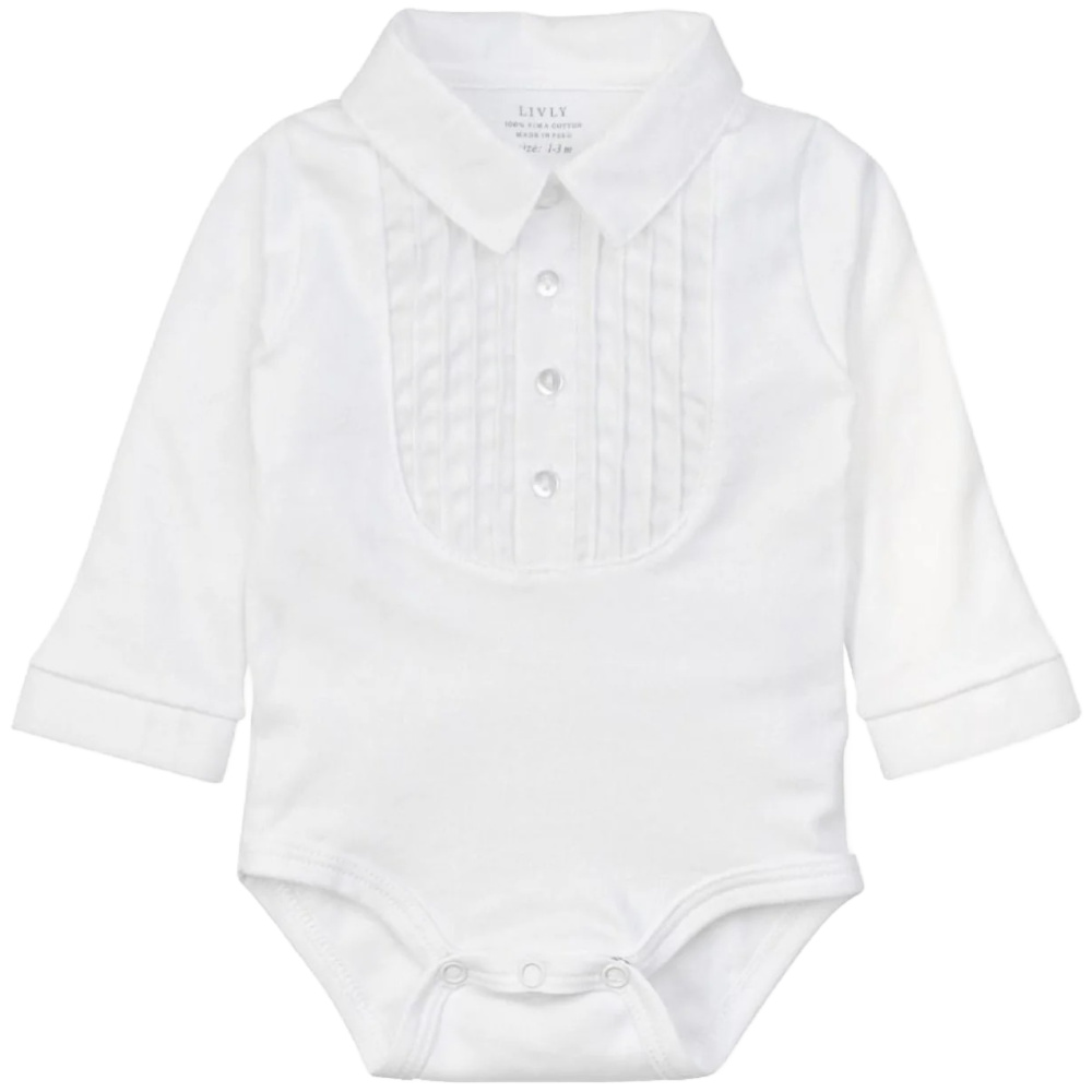 LIVLYs klassiske Marlon body er et tidløst basisplagg med en elegant hvit krage og knappelukking foran – perfekt til både hverdagsbruk og spesielle anledninger. Bodyen er like fin alene som under en cardigan eller genser på kjøligere dager.