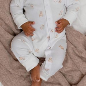 Det søte Teddy Tay-printet og den silkemyke kvaliteten i Pima-bomull gjør denne overallen både komfortabel og tidløs – perfekt som basisplagg i garderoben.