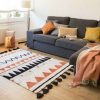 Nydelig gulvteppe i dempede farger med print inspirert av aztekerriket. Like fint på barnerommet som i resten av huset. Teppet er håndlaget og små variasjoner i farge og fasong kan forekomme. Gulvteppene i denne kolleksjonen kan enkelt vaskes i vaskemaskinen hjemme, helt genialt i hjem med små barn, dyr og menn.