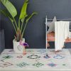 Lekkert fargerikt gulvteppe inspirert av marokkanske bereber tepper. Like fint på barnerommet som i resten av huset. Teppet er håndlaget og små variasjoner i farge og fasong kan forekomme. Gulvteppene i denne kolleksjonen kan enkelt vaskes i vaskemaskinen hjemme, helt genialt i hjem med små barn, dyr og menn.