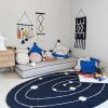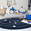 Ovalt gulvteppe med Melkeveien og dens planeter på sort bakgrunn! Perfekt på barnerommet, lekerommet eller i kosekroken. Teppet er håndlaget og små variasjoner i farge og fasong kan forekomme. Gulvteppene i denne kolleksjonen kan enkelt vaskes i vaskemaskinen hjemme, helt genialt i hjem med små barn, dyr og menn.